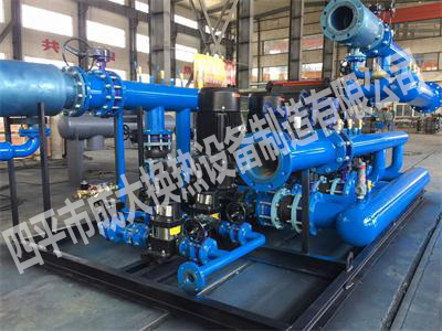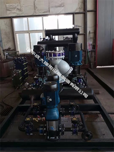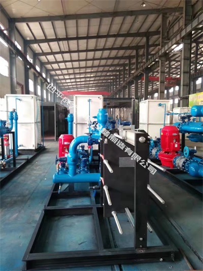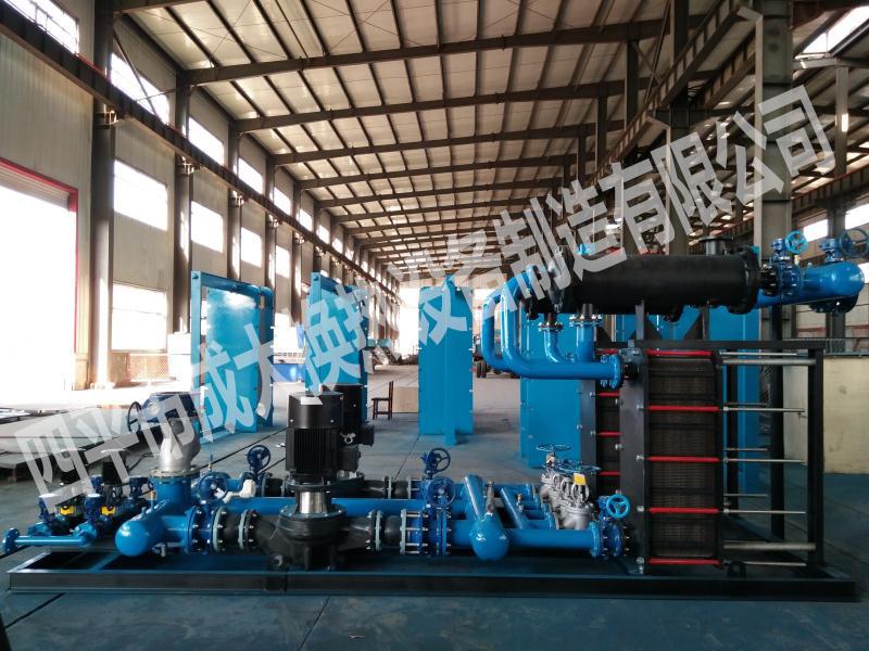 我公司換熱機(jī)組是集成了換熱器,循環(huán)泵,補(bǔ)水泵,溫度計(jì),壓力表,各種傳感器,管路和閥門及工控于一體的成套區(qū)域供熱設(shè)備,并加裝了補(bǔ)水系統(tǒng),定壓系統(tǒng),水處理系統(tǒng),變頻流量控制系統(tǒng),熱量計(jì)及網(wǎng)絡(luò)控制通訊系統(tǒng)。是把大量用戶現(xiàn)場的水泵,閥門,儀表的選擇以及管道法蘭焊接的工作以及電氣控制的現(xiàn)場安裝調(diào)試工作,用我公司來完成,我公司生產(chǎn)的各規(guī)格機(jī)組,容量從 0.2MW 到 15MW ,采用標(biāo)準(zhǔn)模塊代設(shè)計(jì),自由組合,以滿足用戶不同工況的要求,為用戶提供更合理更適用的機(jī)組,在滿足用戶使用的要求前提下,盡可能為用戶節(jié)省設(shè)備的投資。