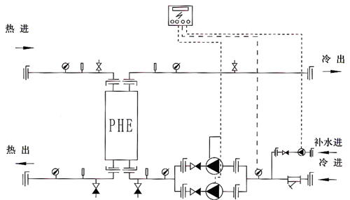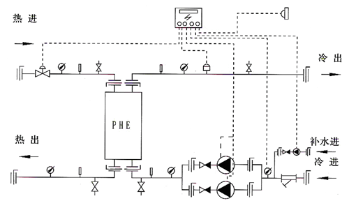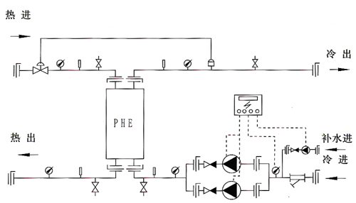 1.Y型過濾器 2.電動調(diào)節(jié)閥 3.壓力表 4.溫度表 5.蝶閥 6.除污器 7.循環(huán)泵