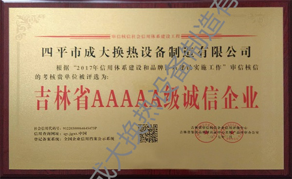 吉林省AAAAA級(jí)誠(chéng)信企業(yè)